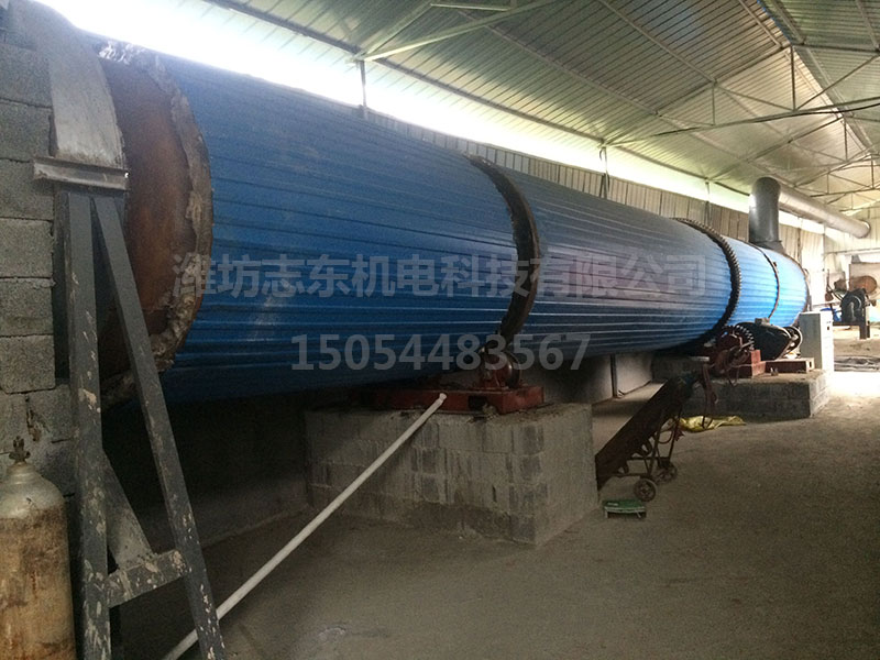 是將待干燥的濕物料由皮帶輸送機或斗式提升機送到料斗,然后經料斗的加料機通過加料管道進入加料端。加料管道的斜度要大于物料的自然傾角,以便物料順利流入干燥器內。干燥器圓筒是一個與水平線略成傾斜的旋轉圓筒。物料從較高一端加入,載熱體由低端進入,與物料成逆流接觸,也有載熱體和物料一起并流進入筒體的。隨著圓筒的轉動物料受重力作用運行到較底的一端。濕物料在筒體內向前移動過程中,直接或間接得到了載熱體的給熱,使濕物料得以干燥,然后在出料端經皮帶機或螺旋輸送機送出。在筒體內壁上裝有抄板,它的作用是把物料抄起來又撒下,使物料與氣流的接觸表面增大,以提高干燥速率并促進物料前進。載熱體一般分為熱空氣、煙道氣等。載熱體經干燥器以后,一般需要旋風除塵器將氣體內所帶物料捕集下來。如需進一步減少尾氣含塵量,還應經過袋式除塵器或濕法除塵器后再排放。